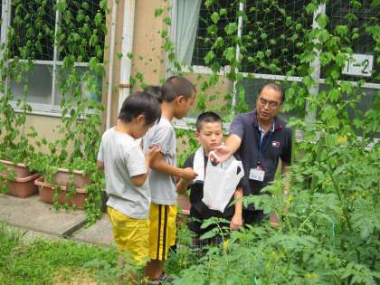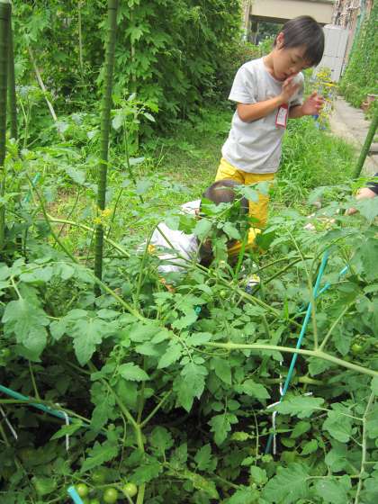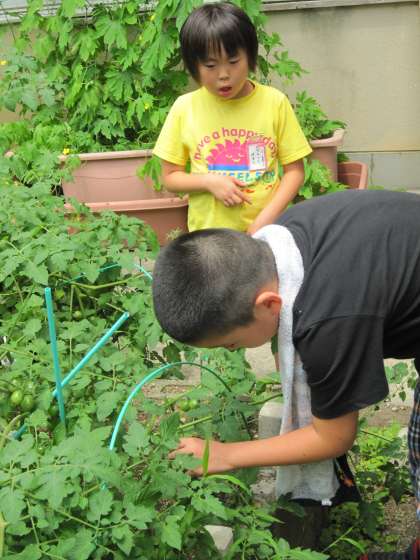 あおぞら学級では,自分たちが育てているミニトマトの収穫をしていました。