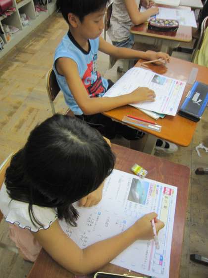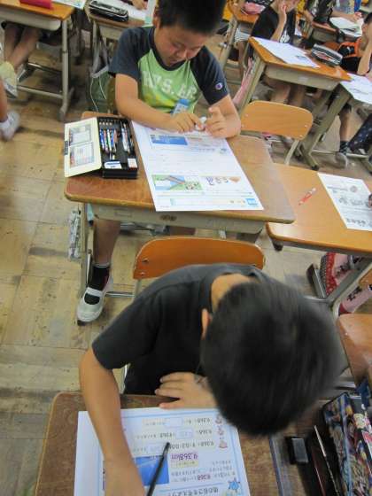 4年2組では,算数の小数の学習を終え,テストをしていました。