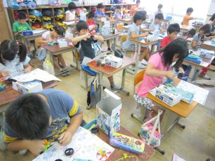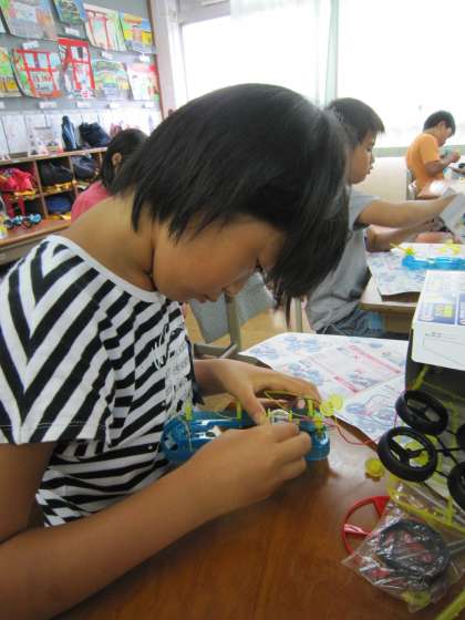 今日は,「乾電池のつなぎ方とモーターカーの走り方」という課題で学習をしていました。子ども達は,モーターカー作りを楽しんでいるように見えました。