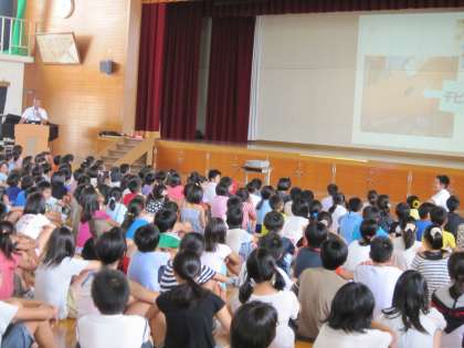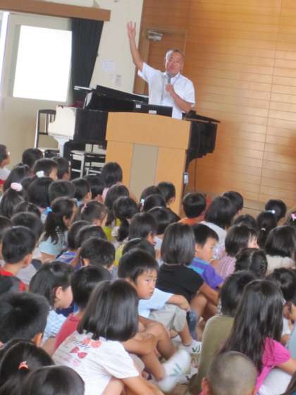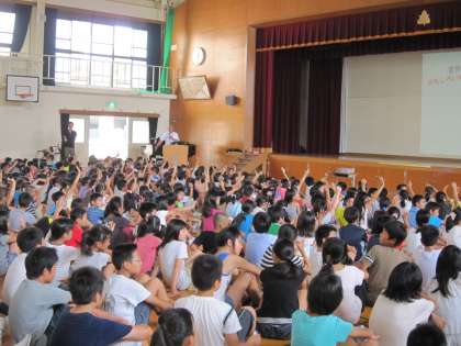 「校長先生は,本が好きです。本が好きな人は手を挙げてみましょう。」