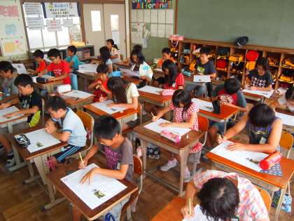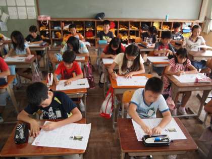 5年2組です。休み前最終のテストをするところです。最後までご苦労様!