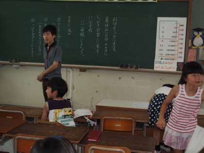 3年2組です。黒板に書かれた手順を守って子どもらは頑張っています。