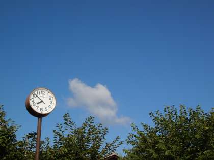 おはようございます。今日は今までで最も夏らしい朝を迎えました。まさに「日本の正しい夏休み」という感じです。時計塔の真下の桜の木にアブラゼミが止まっていました。