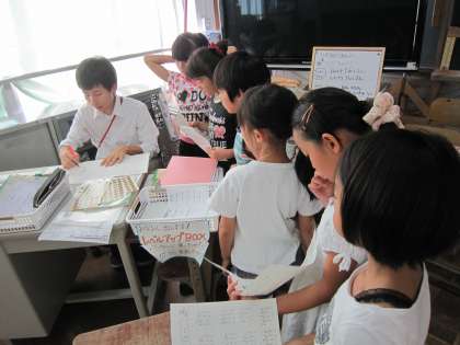 問題を解いた後,すぐに先生に○付けやアドバイスをもらっていました。