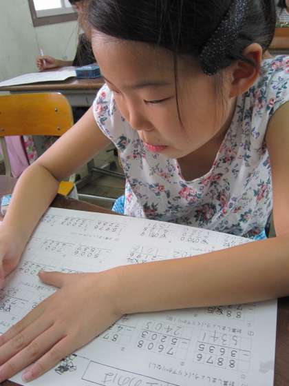 8876−3635や7608−5203などの計算を筆算する練習をしている子もいました。