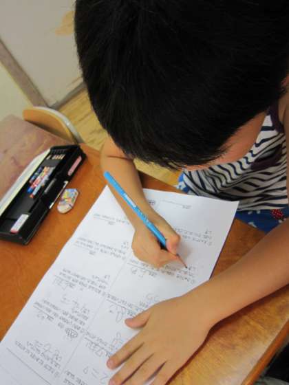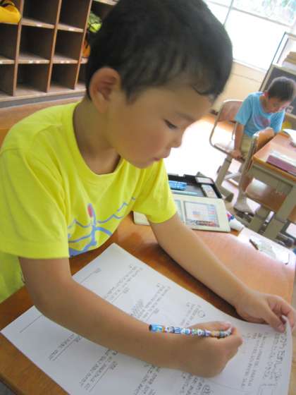 ひらがなの練習をしている子の隣では,算数の問題に取り組んでいる子たちがいました。