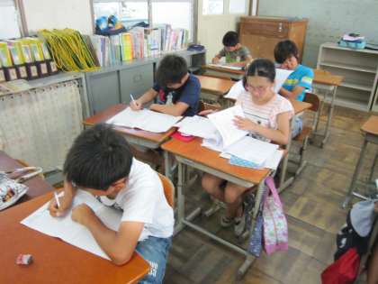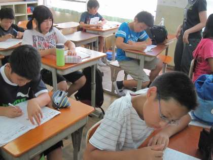 高学年の子ども達が,夏休み明けにジョイントプログラムの確認テストをします。この確認テストの練習として,ふりかえりプリントをします。