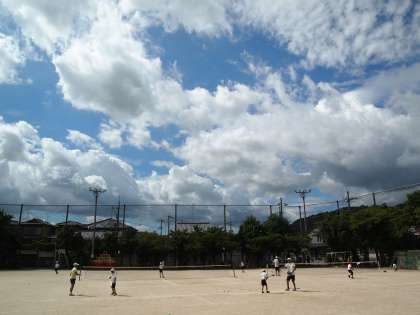 夏空のもとテニス部活のメンバーも一生懸命がんばっていました。