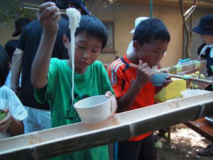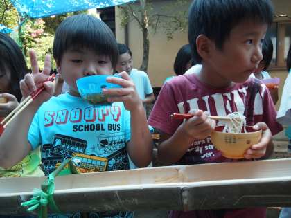 お待たせ!いよいよ「流しそうめん」のはじまりはじまり〜。