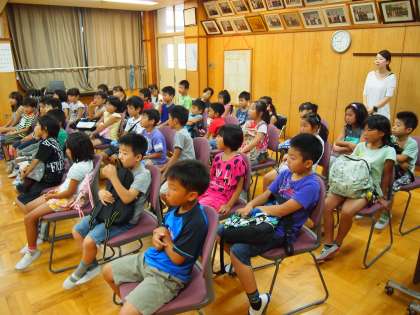 2年生は会議室です。原爆の話を聞いた後,東京大空襲のビデオを見ました。2年生なりの「戦争」に対するイメージができたでしょうか。