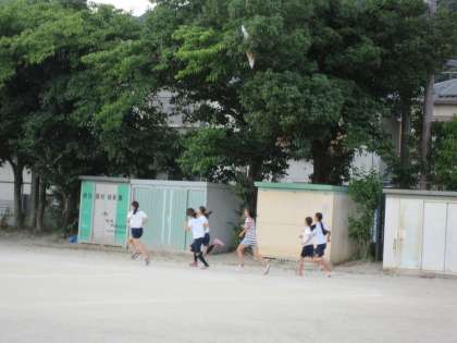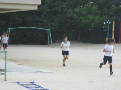 今日も朝から,6年生がランニングにいそしんでいます。