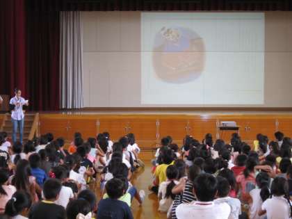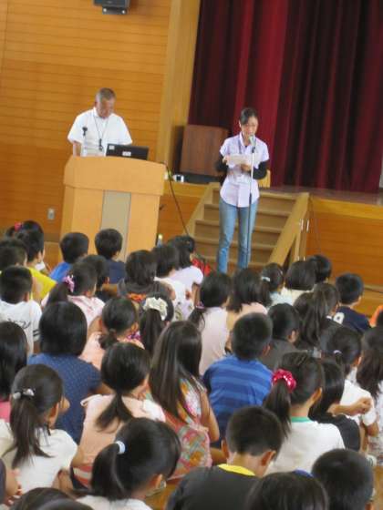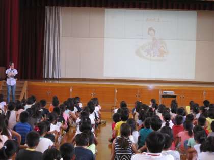 今日は,この新見南吉さんの本の中から「あめだま」の読み聞かせをしました。