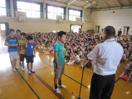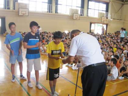 この中で,部活動卓球の子たちが,全市の交流会でブロック優勝を6名の子たちがしましたので,朝会で紹介しました。