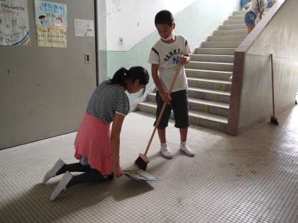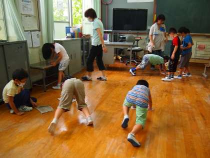1年生の教室も保護者の方のお手伝いがあったとは言え,子どもたちがとってもがんばっていて感心しました。一生懸命床をふく姿に成長を感じました。