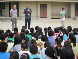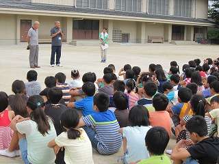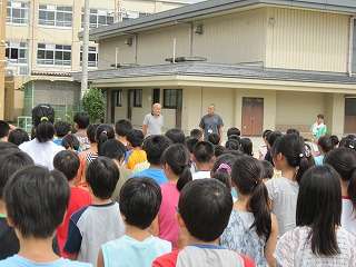 そして,橋岡様より,「自分の身は自分で守ってください。道で知らない人に声をかけられ危険だと思ったら,大きな声ではっきりと『いや』と言いましょう。大きな声を出す・逃げる・近所の人に助けを求めるの3つのことをしましょう。また,おうちで一人で留守番しているときには,カギをかけ,チャイムがなってもすぐには出ないようにしましょう。」と話をしてもらいました。