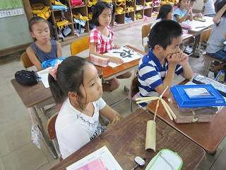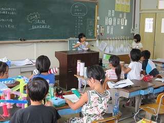3年生は,夏休みに自主研究をしました。その研究したことを発表し合っていました。