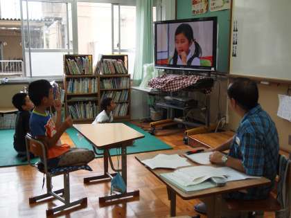 あおぞら学級はテレビ放送を見る時間でした。「正しい歯のみがき方」「上手なマットの運び方」など,子どもたちにとって興味がわくような流れで番組が作られています。一つひとつに反応する子もいて楽しそうでしたよ。