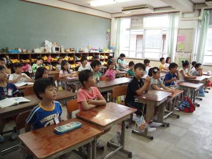 2年2組は午後から先生が出張です。先生からていねいな説明がありましたが,子どもたちはしっかり聞けていました。夏休み明けから3日目ですが,子どもらの「聞く」姿はずいぶん向上してきたように感じます。