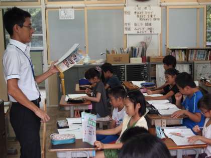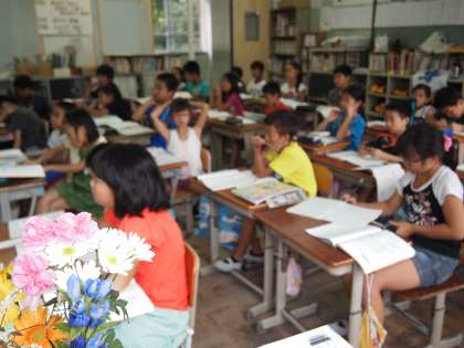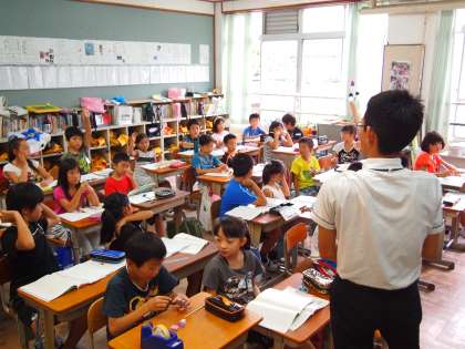 4年2組です。面積の考え方について学んでいます。子どもたちは頭の中を整理しながら一生懸命考えている様子でした。