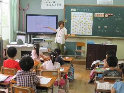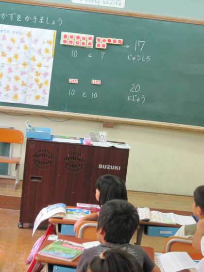 1組では,10と7で17と言うように学習していました。