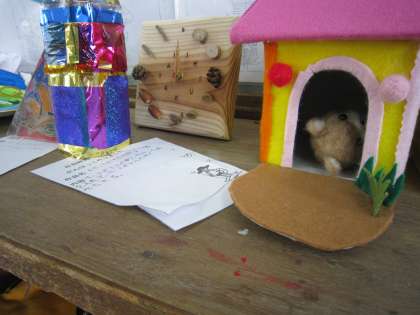 5年1組の教室の後ろには,夏休みの作品が飾られていました。