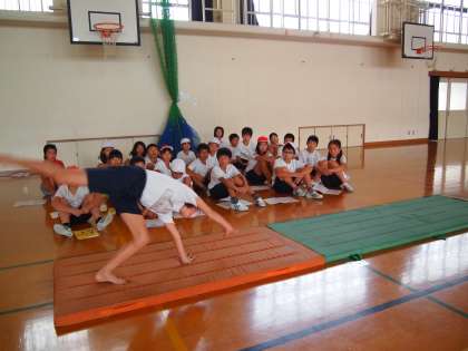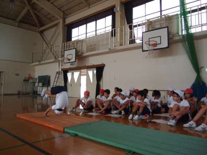 5年2組は今日からマット運動です。まずは先生から簡単な技の説明がありましたが,お手本を見せてくれる子があって拍手が起こっていました。これからの体育が楽しみですね。
