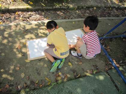 1年生は,図工で「かげをうつして」に取り組んでいます。