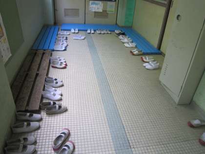 図書室の前を通ると,上靴がきれいに並んでいました。