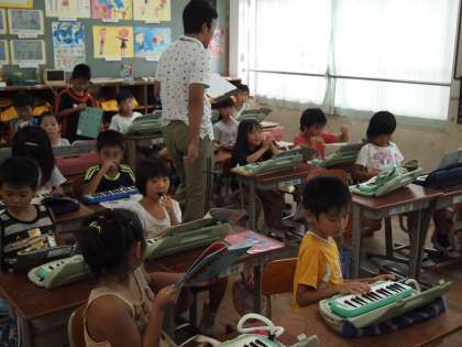 2年1組はけんばんハーモニカで「チューリップ」を吹いていました。今までの復習かな?