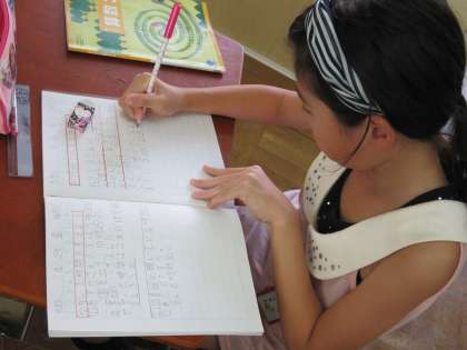 自分はどのように解いたのかを,みんなの前で発表したりしながら,学習を進めていました。