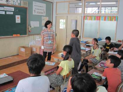 子ども達は,これまでの学習を通して英語に親しんでいるので,照れながらもしっかりと英会話を楽しんでいました。