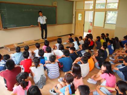 あおぞら学級の4年生と4年1組,2組が多目的室に集まりました。今日は3週間後に迫ったみさきの家野外活動に向けての心構えを聞きました。「5分前行動」や「来た時よりも美しく」などいろいろと心がけることがあります。本番に向けて気持ちを高めていってくださいね。
