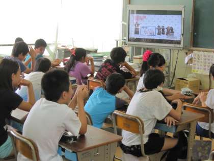 6年1組では,社会科で学習してきたことについて,映像資料を見ながら復習をしていました。
