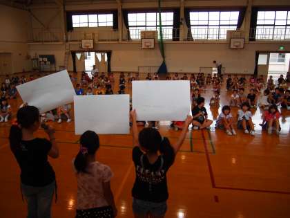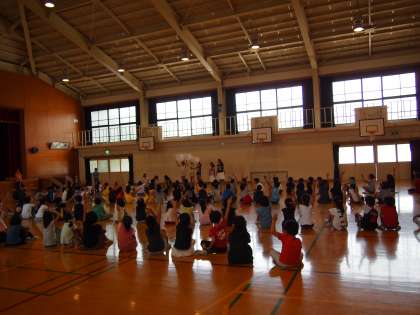 今年も恒例の「豆つまみ大会」が始まりました。今日の中間休みはまず3・4年生です。最初に給食委員会の子どもたちから「給食クイズ」が出題されました。「給食一食分はいくらでしょう? 答え 240円」「給食の牛乳は何ミリリットルでしょう? 答え200ミリリットル」など