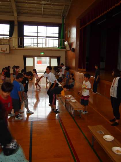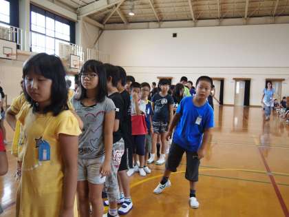 列の後ろで並んでいる子どもたちも,前の長椅子のところがどのように進んでいるのか…とっても気になるようですね。