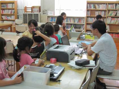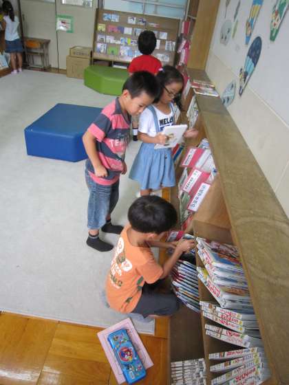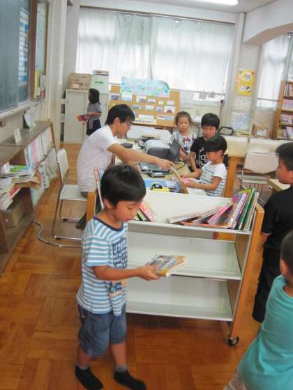 1年2組は,図書室で借りていた本を返し,新しい本を借りていました。