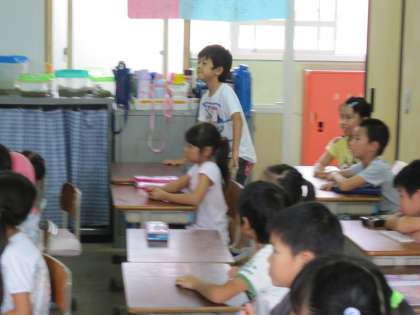 2年2組は,昨日の続きで,3枚のカードに考えたことを書いていました。なかなかカードに書くことが思い浮かばないで困っている子もいました。