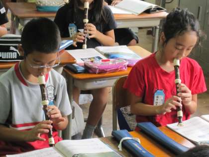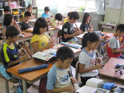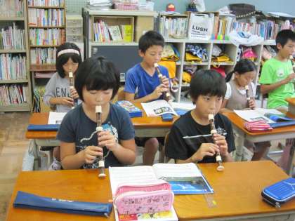 4年2組は,音楽の時間にリコーダーの練習をしていました。
