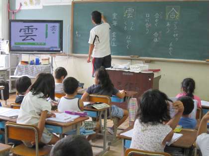 「合」と「雲」の書き順や読み方について学習していました。その中で,あめかんむりと雨の違いについても指導していました。