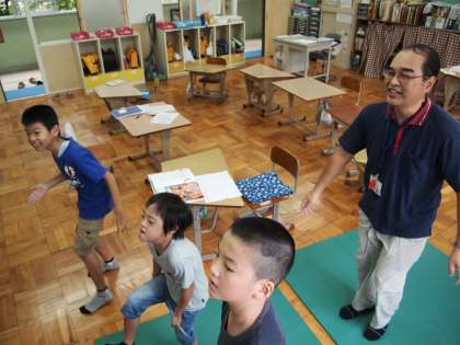 あおぞら学級はテレビを見ながら踊っています。今度の合同運動会で披露するのかな?と思ったのでしたが違いました。11月の学芸会で使うかもしれない動きだそうです。楽しそうですよ。