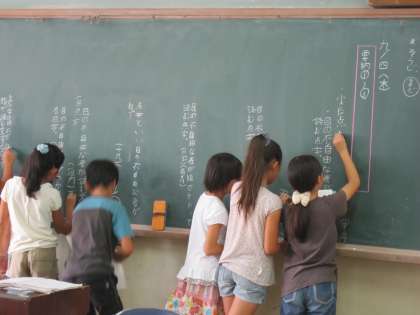 4年2組では,国語で「手と心で読む」を学習しています。今日は,1〜3の段落の要約を考え,発表し合っていました。