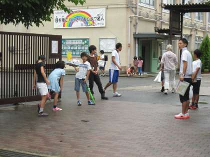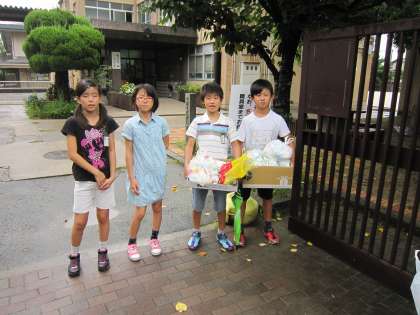 集団登校の子を見ると,手にペットボトルのキャップが持っている子がいました。