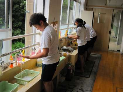 家庭科室担当の子ども達を見ていると,工事でほこりをかぶったかもしれない食器などを洗ってくれていました。