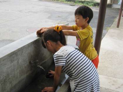 みつけ玉を磨く子ども達