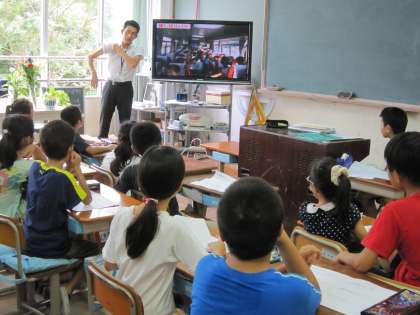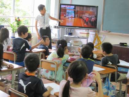 みさきの家ってどんなところなのかを,4年2組では子ども達に映像資料を交えて説明していました。