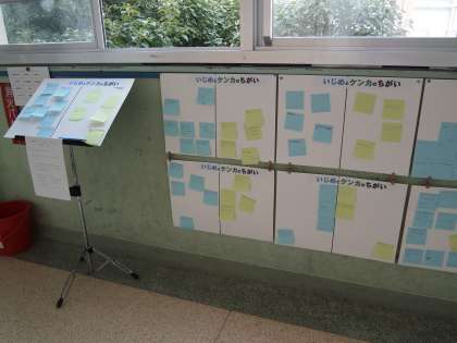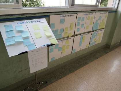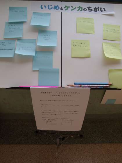 5年生の廊下にありました。2時間目に会った道徳の授業を受けてのものでしょうか。保護者の方のご意見を求めています。