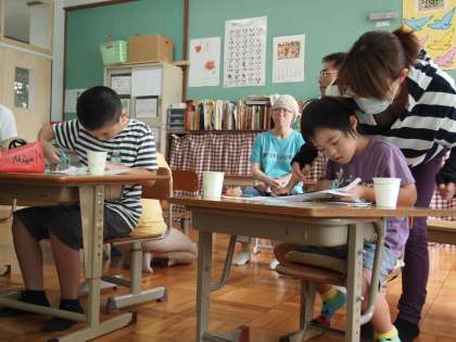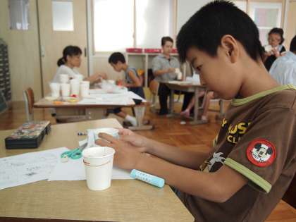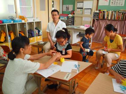 あおぞら学級の3時間目です。「ジャンプカンガルー」というコップに張った輪ゴムの力を利用した手作りおもちゃで遊びました。輪ゴムの力ってすごいですね。