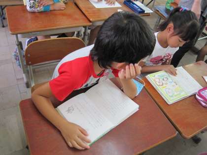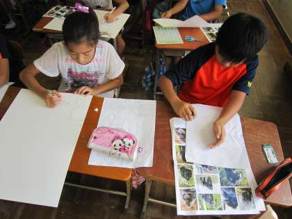 「重なるようにしよう」というめあてをもって描いているので,重なりを考えながら描いていました。