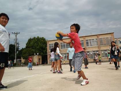 コートにクラス全員が入るので人口密度がとても高い気がします。逃げるのは大変ですね。
