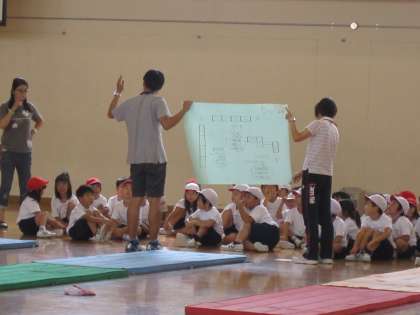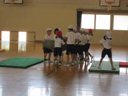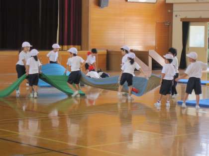 1年生は,マットあそびを体育でしています。「スーパーロングワールド」と名前を付けて,練習をしていました。
